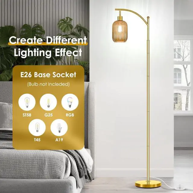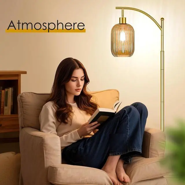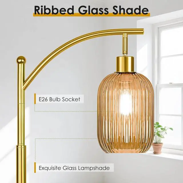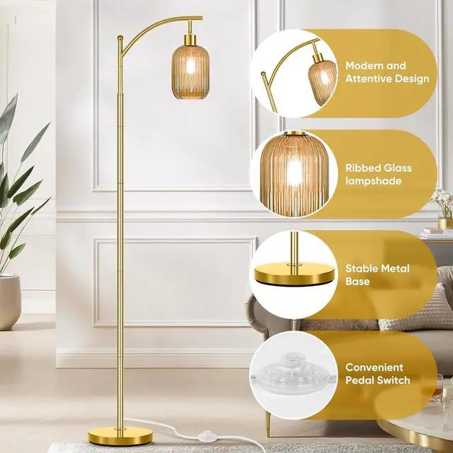 Versatile Warm & Inviting Illumination: Experience the perfect blend of soft ambient glow and focused task lighting. The high-quality gold glass floor lamp diffuses light beautifully, creating a warm and welcoming ambiance ideal for relaxing in your living room. Its excellent light dispersion also provides sufficient illumination for reading or activities in your favorite corner, making it both beautiful and highly functional
