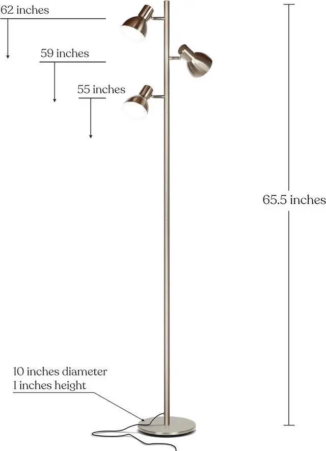 Long-Lasting Standing Lamp With Built-in Dimmer: This Brightech tall tree lamp comes with three LED lights that should last you for 20, 000 hours, which should be about 20 years of regular use (3 hours a day). These bulbs are molded into the standing lamp, meaning that they cant be replaced, but you shouldnt have to worry about that since they' re LED bulbs. Save energy and money (up to 90% of your electric bill) by using LED bulbs they dont waste energy!