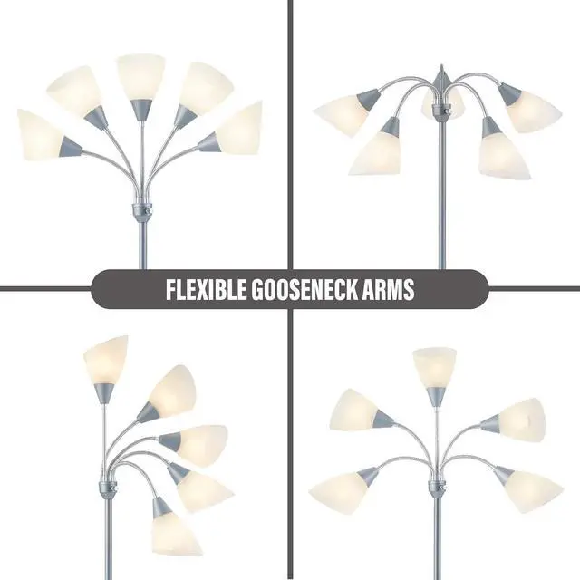 HonoDing Medusa Floor Lamps Standing Lamps 5 Heads Adjustable Reading Light Large Shade Use E26 A19 Bulb Floor Lamps for Living Room Bedroom (Silver)