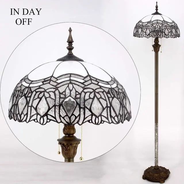 WERFACTORY Tiffany Floor Lamp Crystal Bead White Stained Glass Standing Reading Light 16X16X64 Inches Antique Pole Corner Lamp Decor Bedroom Living Room Home Office S508W Series