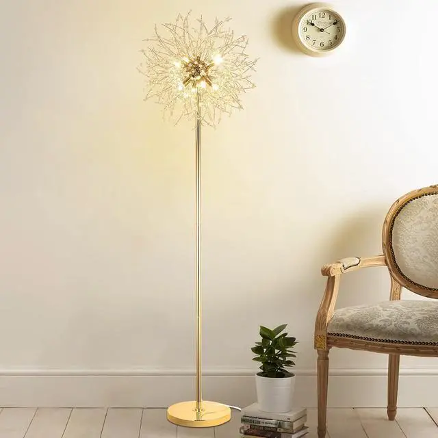 Standing Lamps for Living Room DecorThe classy mid century floor lamp features matte gold finish, combines shining K9 crystal bunches, looks great with most home decor. Thoughtful foot switch design also fully considers pregnant women and the elderly, convenient to operate without having to bend down.