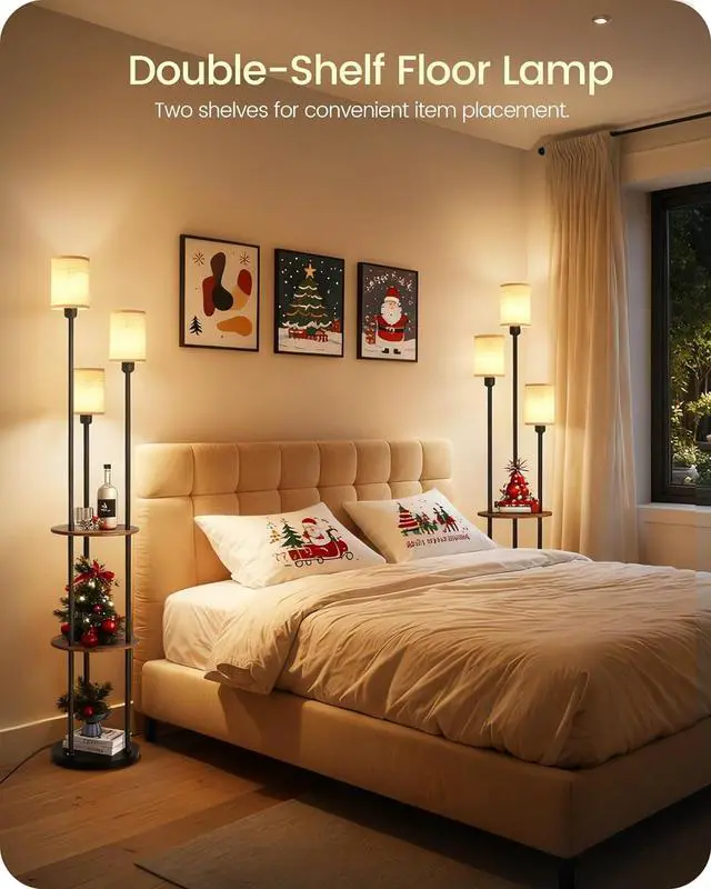 Dual-Layer Storage Solution: Break away from traditional floor lamp functionality with integrated dual-layer vintage shelves. Crafted from high-quality engineered wood, each shelf supports 20 lb, making it ideal for displaying plants, artistic pieces, snacks, or books