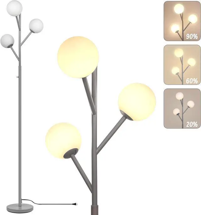 1100% stepless dimmer: 3 Globe Mid Century Modern Floor Lamp is fully dimmable with stepless adjustment of 0-100% brightness. According to different scene needs, you can choose any brightness from dim & eye protection to full brightness by rotary the dimmer knob on the pole.