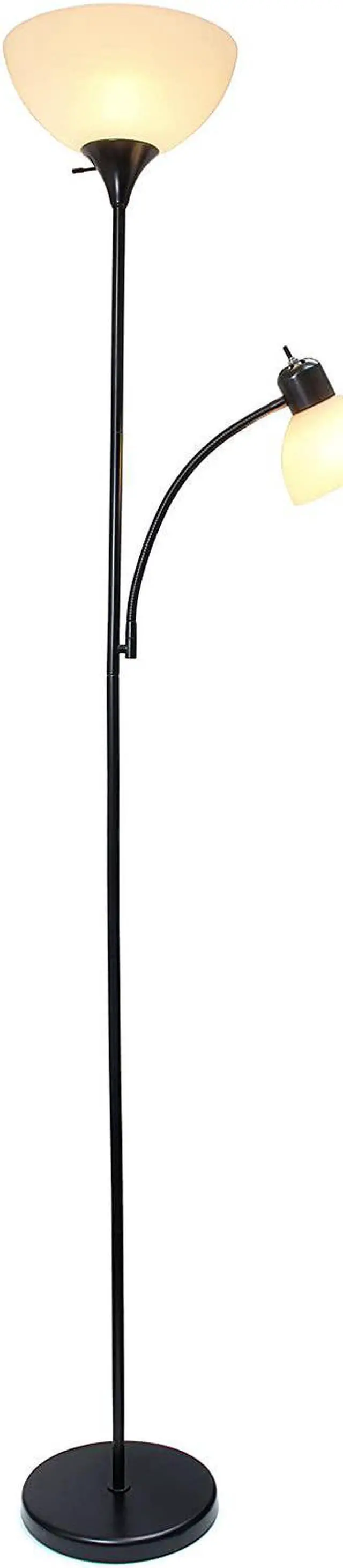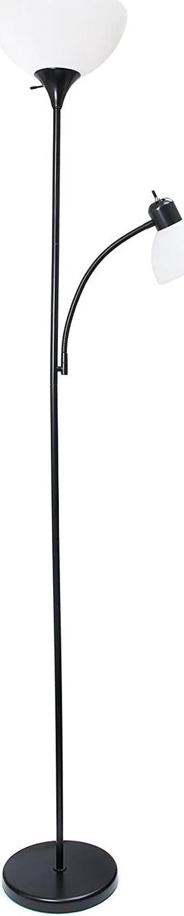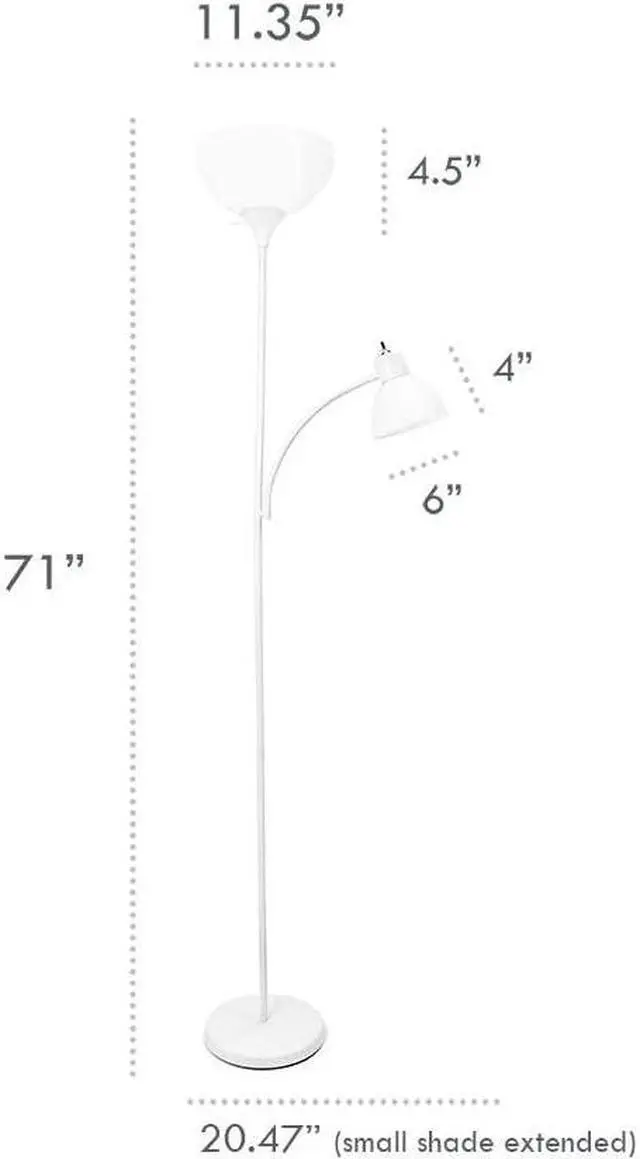 Painted Finish White Plastic Shades Floor lamp uses 1 X 100W equivalent 3-way type A medium base bulb (not included) Reading light uses 1 X 60W equivalent type A medium base bulb (not included) Some assembly required.