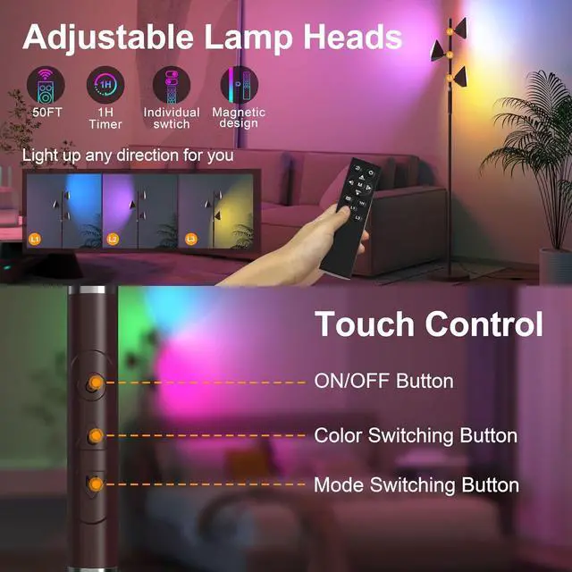 3 Independent Rotatable Triangular Diamond Lamp Heads: With a unique triangular diamond lamp head design, each lamp supports 320° rotation and 160° vertical adjustment, accurately projecting light to illuminate any direction you want. The simple streamlined shape of this floor lamp perfectly fits modern, Nordic, industrial and other decoration styles. It is an ideal decorative lighting for living rooms, bedrooms, study rooms, bars and other spaces