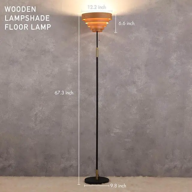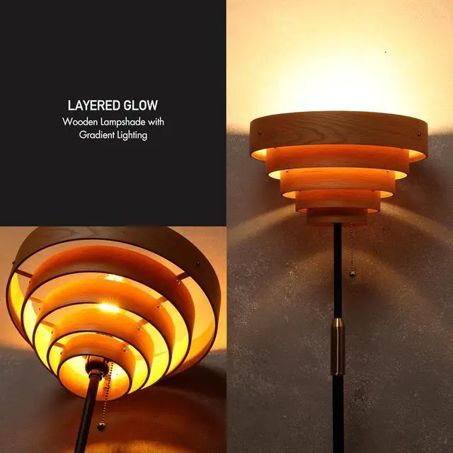 Elegant Layered Design Featuring a unique multi-tiered wooden lampshade, the O' Bright Cascade Floor Lamp creates a stunning gradient glow, adding warmth and sophistication to any space.