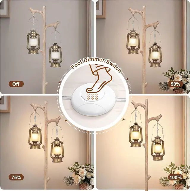 DIMMABLE: Dimmable feature of foot switch corner floor lamp, 6.2 ft plenty long enough cord, one click to control the ON or OFF switch, click more than 2 seconds that adjust the brightness from 0% to 100%, supper convenient. Dimmable floor lamp makes simple to create the perfect ambiance in any room