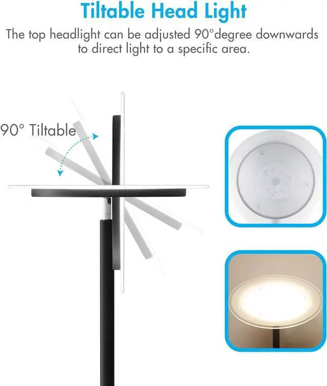 Convenient remote and tiltable design - The upright floor lamp comes with a 360° omnidirectional (point anywhere) remote control to set your lighting anywhere from up to 60 feet. The remote can be easily placed on metal surfaces (fridge, whiteboard, and lamp) for convenient access. The head light is tiltable to a 90°degree angle to illuminate specific areas that you choose. Dont settle for the floor lamps that are rigid in design, get the one suited for your needs in both the home and office.