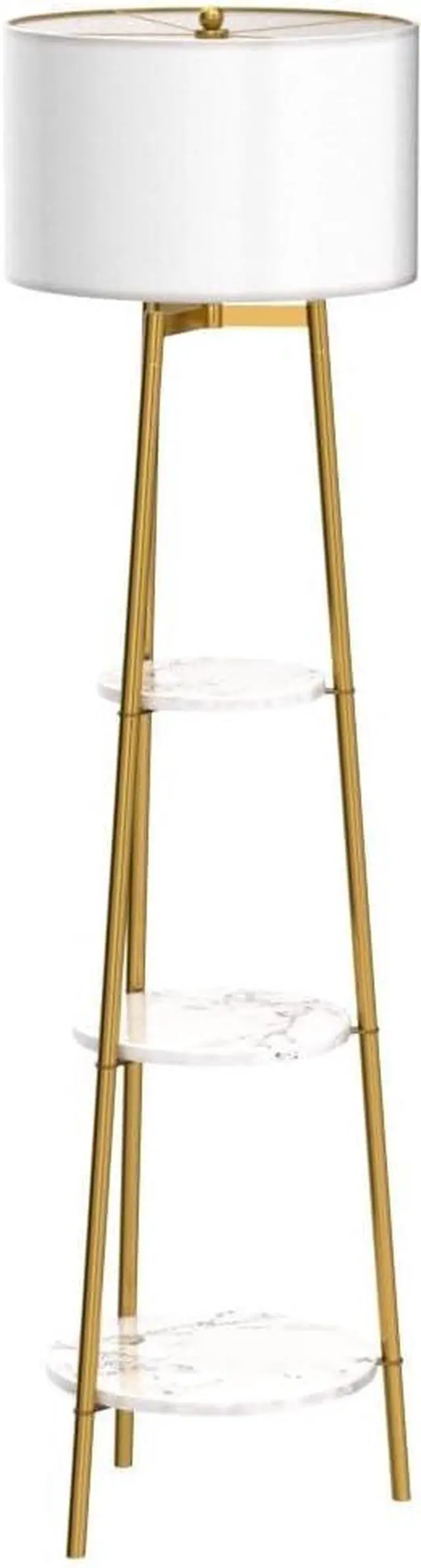 STURDY STRUCTURE: As practical decorative furniture, the lamp is easy to assemble and stable enough to ensure safety. High-quality metal post comes in beautiful gold finish, gorgeous white textural lamp shade, and classic faux marble shelves.