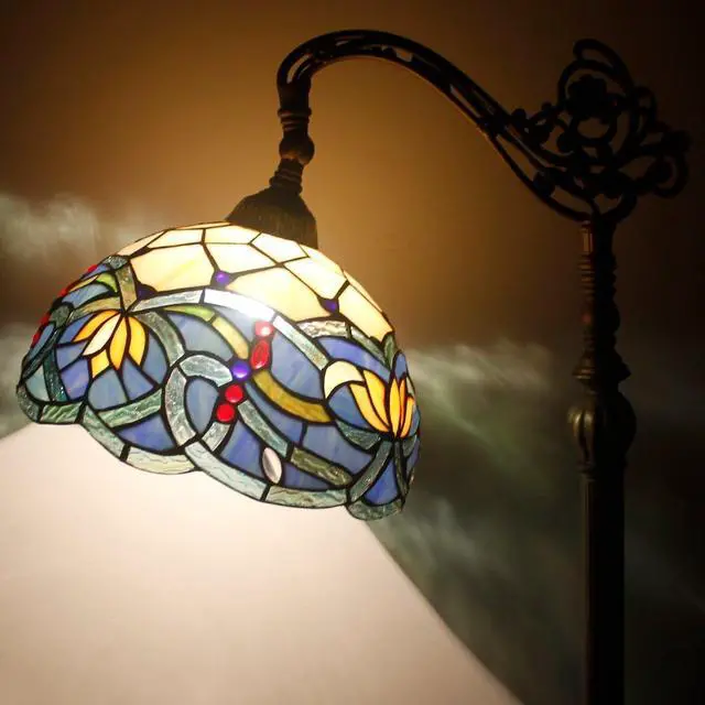 WERFACTORY Tiffany Floor Lamp Blue Lotus Flower Stained Glass Arched Lamp 12X18X64 Inch Gooseneck Adjustable Corner Standing Reading Light Decor Bedroom Living Room S220 Series