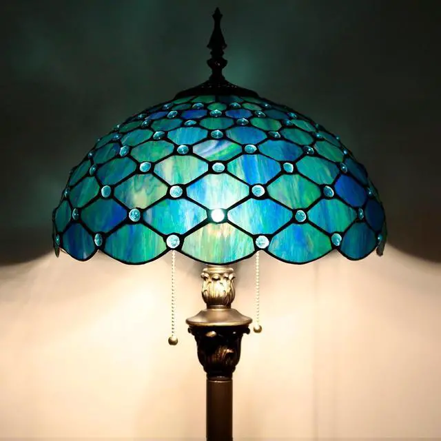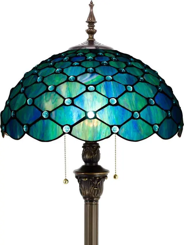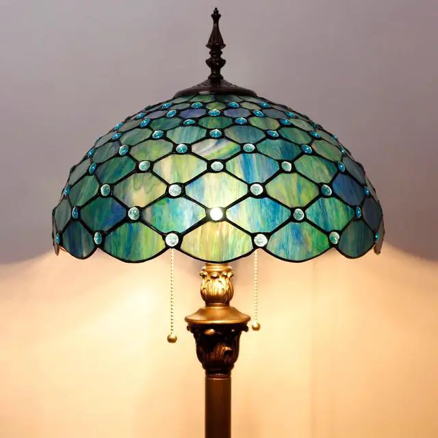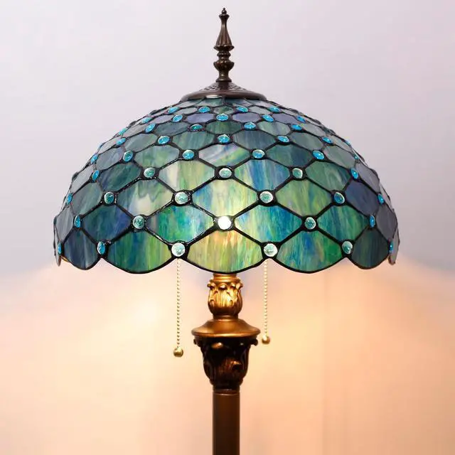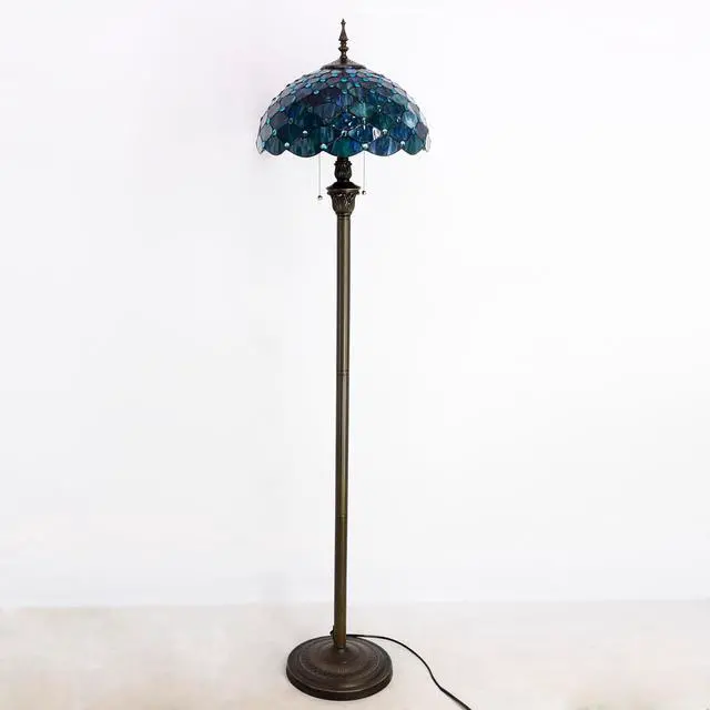 [ZJART design] The glass shade is 16 inches wide, 16 inches long, and 70 inches in total height, with a bronzed metal base to provide good stability and prevent falls. UL certified, zipper switch, easy to assemble, do not need any tools to complete.