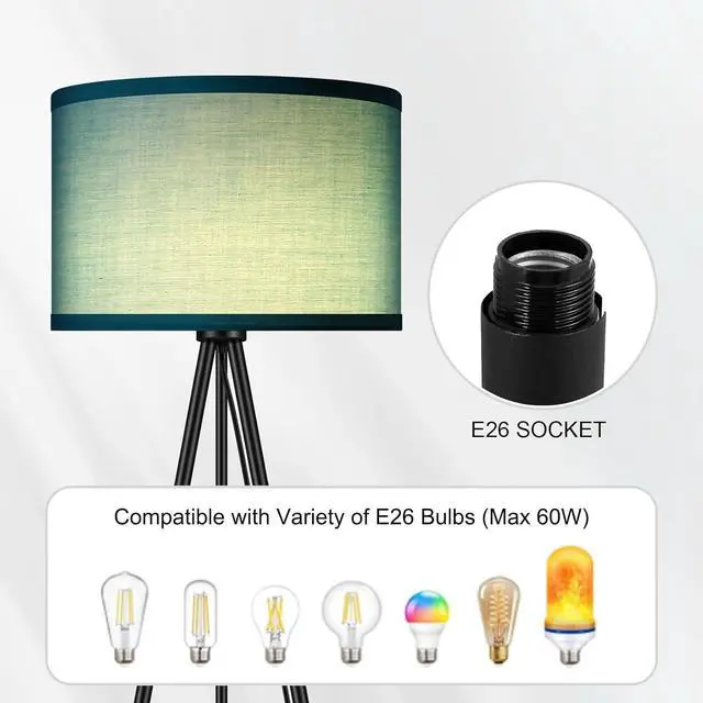 Compatible with Smart Devices; You can plug this tripod floor lamp in the smart plug (not included), or connect it to a smart wall switch (not included); Add the standing lamp to your home appliances group, and easily controlled this floor lamp by your phone; Intelligent design of this fabric floor lamp help you enjoy easier life and home automation. This mid century floor lamp has E26 Lamp Baseyou can also DIY bulbs and replace it with bulb up to 60W