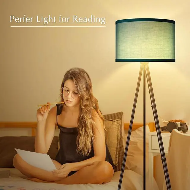 Decorative & Practical; The fabric tripod floor lamp has a middle century tripod lamp shape, retro linen lampshade and simple metal black lamp pole, which makes it suitable for modern, farmhouse rustic and boho style decoration type. This tripod floor lamp with dimming function, can provide bright light for living room, office room or gentle light for small space like bedroom, study room. Semi-open drum fabric lampshade, you could get the perfect reading light by the standing lamp as well