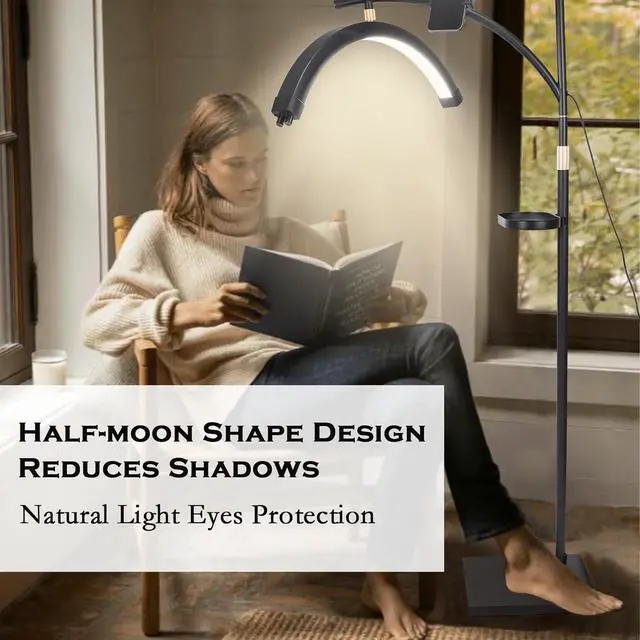 [Stable and easy to install floor lamps] This improved version of the half-moon lamp is very easy to install. And the base of this floor lash lamp is very sturdy and won' t wobble. A cell phone holder is also included for easy recording of instructional videos of work details. Suitable for lash Extensions teach, Estheticians teach, Tattoo teach, skincare teach, beauty teach, nail tech and more!