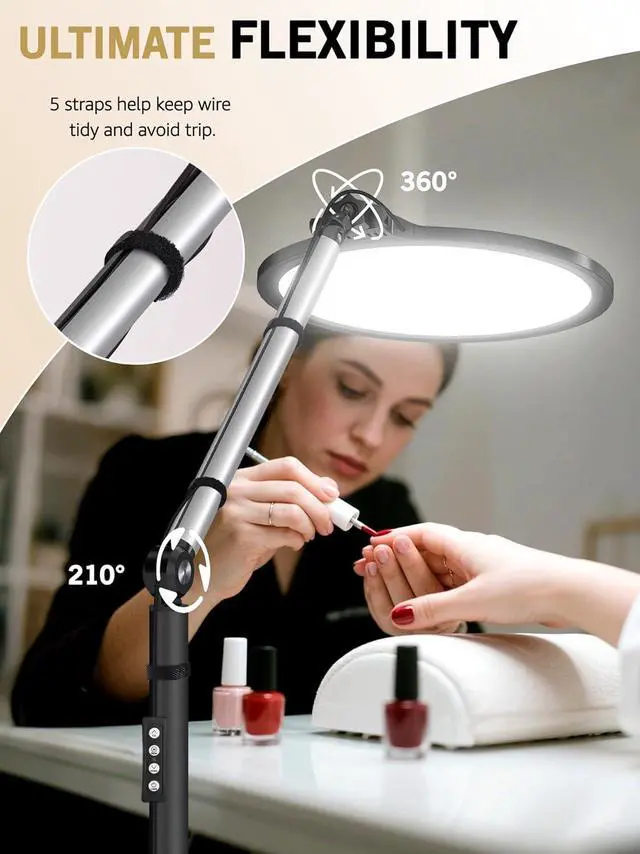 Flexible Arm & Adjustable Height: This flexible arm features 2 pivot joints, each adjustable from 0° to 180°, and is equipped with a 360° adjustable ball head. The stand height can be easily adjusted between 23 and 65 by removing sections or tilting the arm. With both height and angle adjustment, you get total freedom to nail lamp from any height or angleperfect for lash, beauty, tattoo, nail and makeup technicians.