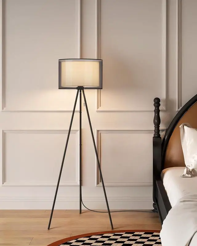 Modern DesignLED floor lamp, textured metal light pole, showing simple lines. The stylish black outer lampshade and the gentle white inner lampshade create a different aesthetic feeling. Translucent outer lampshade, you will see the wire buckle, wrapping edge and thread defects, please be careful if you mind. New installation, the lampshade will have wrinkles because of folding, time will become flat.