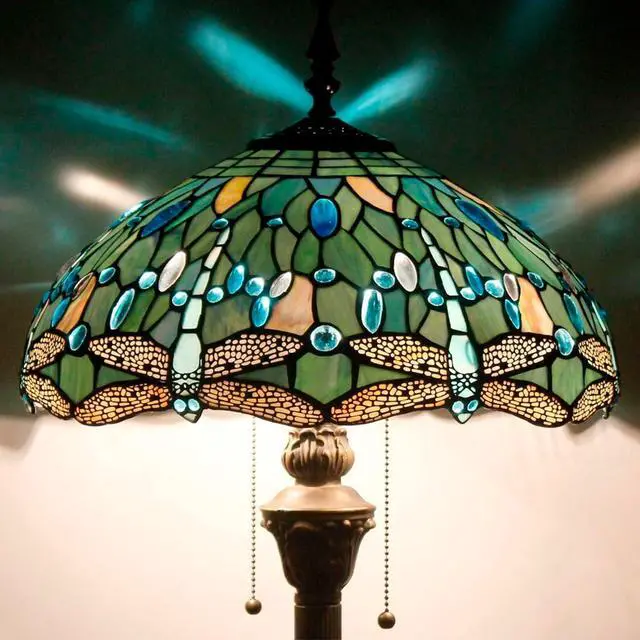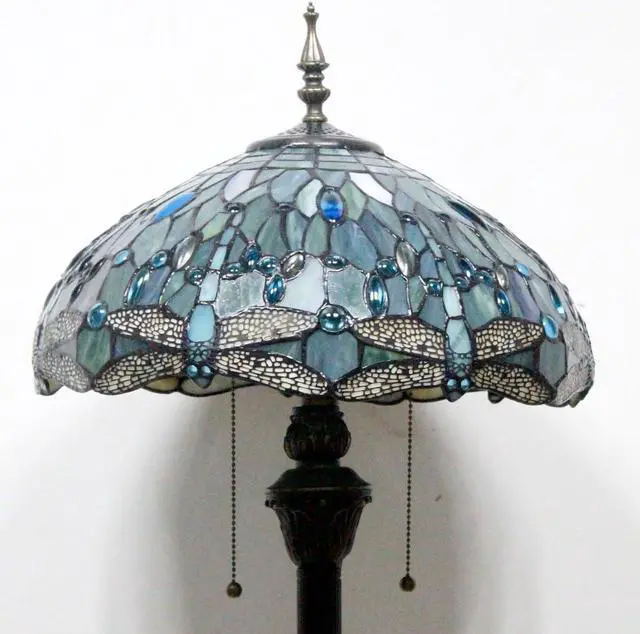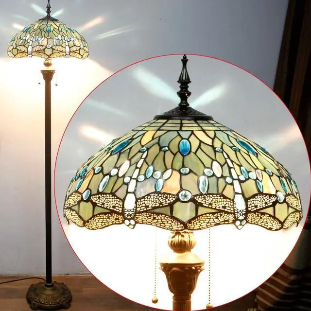 WERFACTORY Tiffany Floor Lamp Sea Blue Stained Glass Dragonfly Standing Reading Light 16X16X64 Inches Antique Pole Corner Lamp Decor Bedroom Living Room Home Office S147 Series