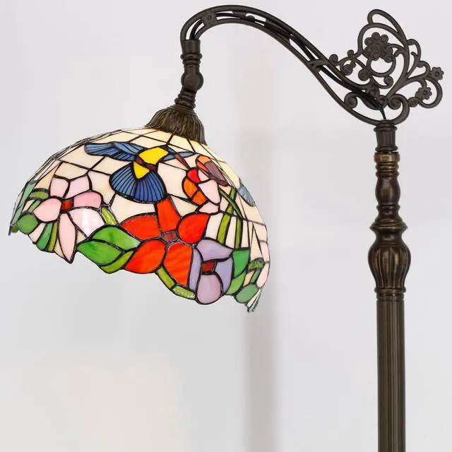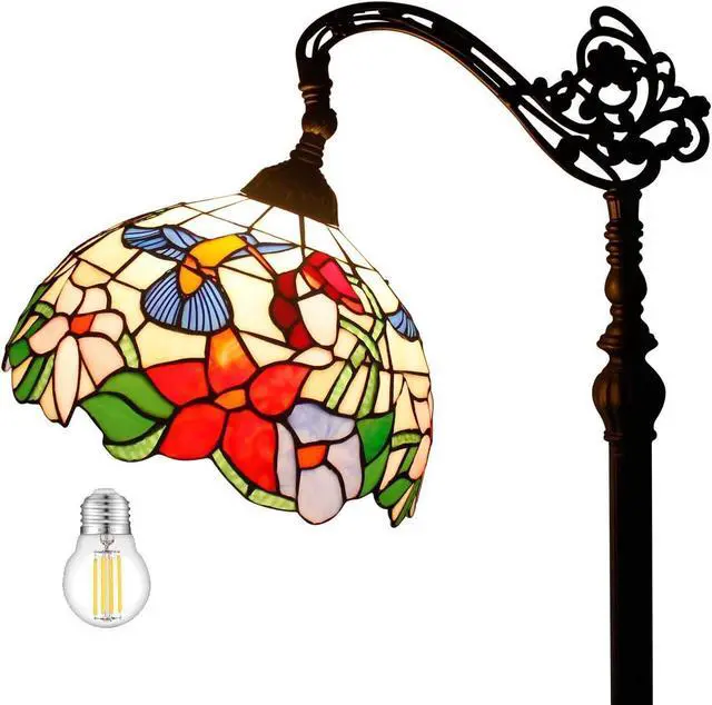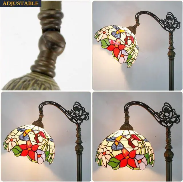 WERFACTORY Tiffany Floor Lamp Hummingbird Amber Stained Glass Arched Lamp 12X18X64 Inches Gooseneck Adjustable Corner Standing Reading Light Decor Bedroom Living Room S101 Series