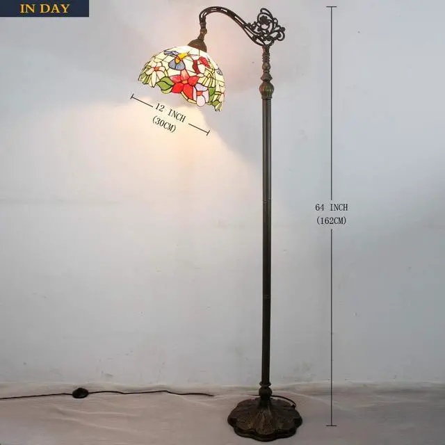 • Werfactory Design: The lampshade wide 12 inch, The floor lamp height 64 inch. The resin base wide 11 inch, finished with antique bronze, weight 4.8KG, provide a good stability from falling. Foot switch 43 inch far from plug, 45 Inch from base, UL listed.