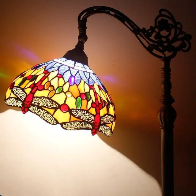 WERFACTORY Tiffany Floor Lamp Orange Blue Stained Glass Dragonfly Arched Lamp 12X18X64 Inch Gooseneck Adjustable Corner Standing Reading Light Decor Bedroom Living Room S168 Series