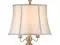SpecificationsUL listed. 63 1/2" high overall. Base is 10" square. Shade is 14" across the top x 18" across the bottom x 12" high. Weighs 21 lbs. Uses three maximum 60 watt and one 150 watt standard-medium base bulbs (not included). Built-in LED for night light.