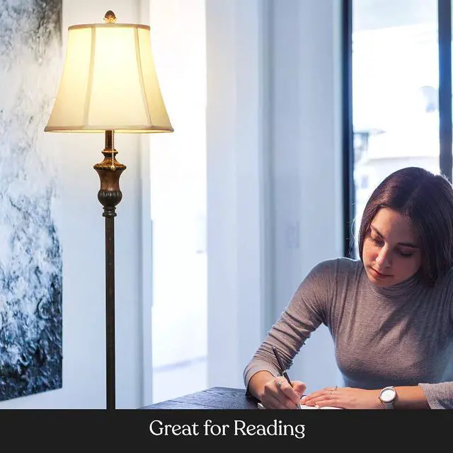 Long-Lasting And Energy-Saving Standing Lamp: This Brightech tall lamp comes with a luminous 9W LED light bulb that will save energy and last for decades. Its advanced 3, 000 K warm white LED technology comes packed with 800 lumens this light will be brighter than lamps that use incandescent or halogen bulbs. LED lighting does not generate heat, so theres no need to fear getting burned.