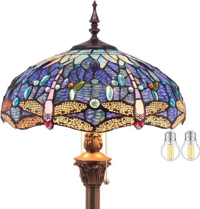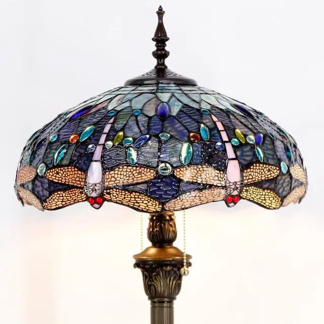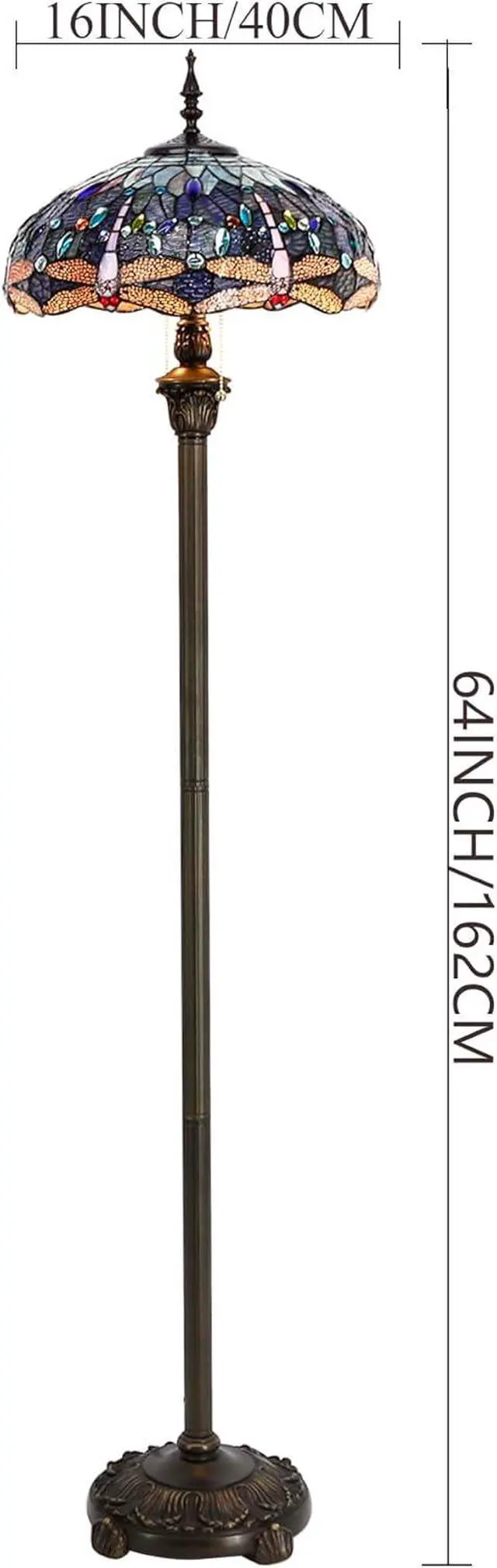 WERFACTORY Tiffany Floor Lamp Dragonfly Blue Cloud Stained Glass Standing Reading Light 16X16X64 Inches Antique Pole Corner Lamp Decor Bedroom Living Room Home Office S631 Series