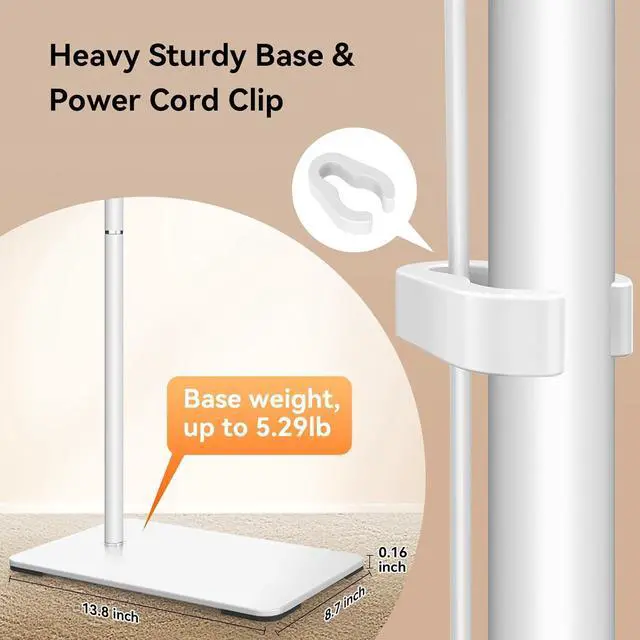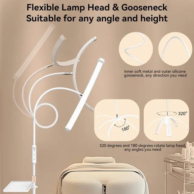 Adjustable Height & Flexible Neck Height adjusts to 25.6 ", 47.4 " or 64.2 " so this eyelash light fits beds and tables for lashes, brows, facials or nails. The 320° rotation, 180° tilt and flexible neck let you place light exactly where you need it.