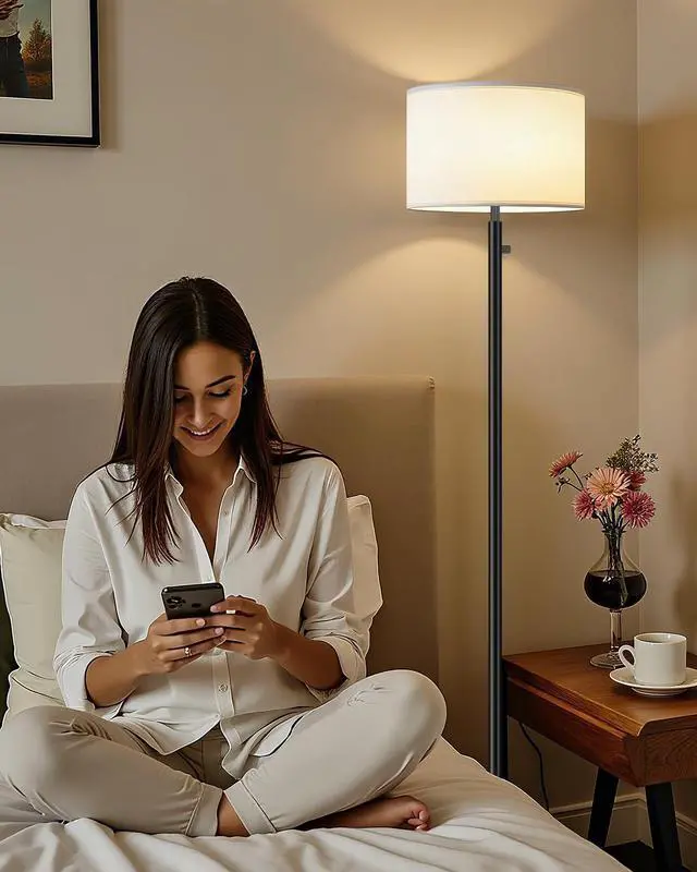 Soft ambient light: The linen lampshade effectively diffuses the bulb' s light, casting a comfortable, soft glow. Whether in the living room, bedroom, or nursery, this living room floor lamp complements any decor seamlessly and enhances the ambiance.