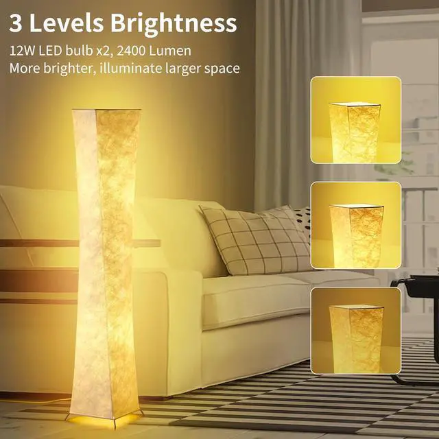 Soft & Warm Ambient LightingChiphy Floor Lamp offers 3 levels of brightness with high quality led 12Wx2 LED bulbs providing up to 2400 LM (equivalent to 100W) to brighten up your space. Features 2700K color temperature to provide a sweet & cozy glow, this column floor lamp is a perfect ambient lighting option for living room, bedroom, dining room, study room, office, reading, partying, leisure time, casual get-togethers, spa, meditation space, etc.
