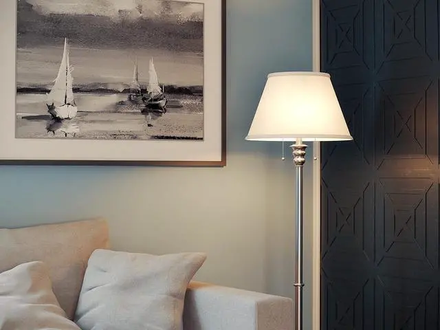 Modern Floor Lamp: The elegant indoor floor lamp with a brushed steel finish and a white linen shade adds the perfect rustic accent to your home decor