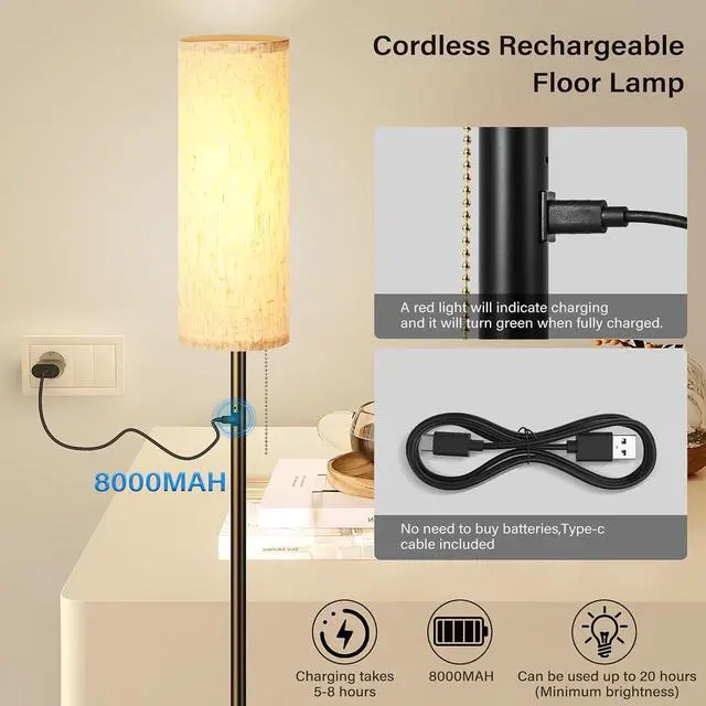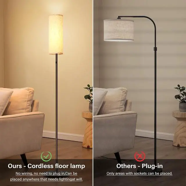 Quality Materials for Durability: Crafted with a sturdy metal base and a stylish linen lampshade, our cordless floor lamp combines aesthetic appeal with robust construction. This battery-powered floor lamp is designed for longevity, making it a reliable choice for all your lighting needs