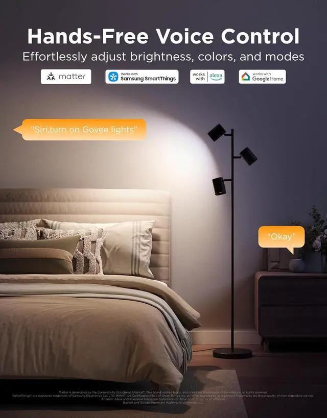 Smart & Seamless Control: Effortlessly manage your Govee lamp hands-free via Matter, Google Assistant, or Alexa voice commands. Adjust brightness, set schedules, create custom scenes, and sync with smart home systems all via Govee Home App