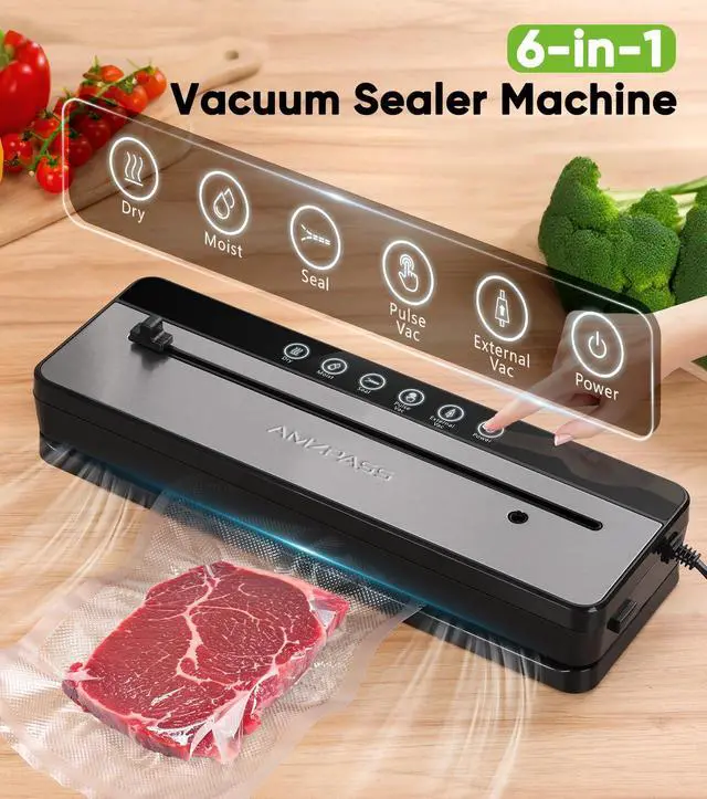This small vacuum sealer offers 4 versatile modes: Auto Vac-Seal (Dry/Moist), Pulse Vac, Seal, and External Vac. With just one click, it handles vacuum sealing effortlessly. Perfect for packaging meats, nuts, vegetables, and more, it works seamlessly with various vacuum bags and jars, making it a great sous vide vacuum sealer for meal prep enthusiasts.