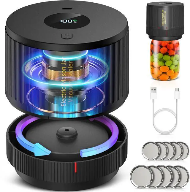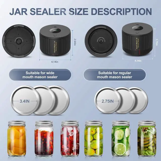 For all your vacuum sealing needsIncludes an electric vacuum sealer contains a wide mouth sealer, a standard mouth seal converter, 5* wide mouth Mason jar lids and 5* regular mouth Mason jar lids, charging cable and user guide. Our food vacuum sealer kit will help you remove the air from your Mason jars and extend the life of your stored food.