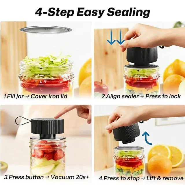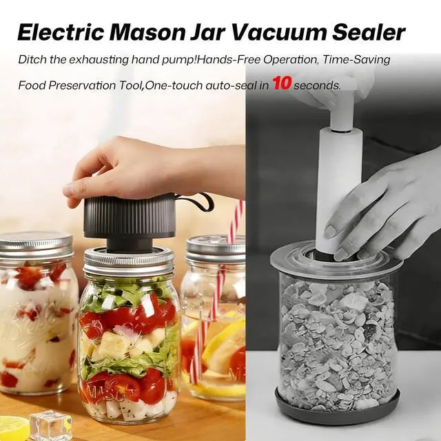 Food-Safe Long-Term FreshnessMade of ABS plastic + food-grade silicone, this vacuum jar sealer for mason jars safely removes air from jars. Extends food freshness, reduces wasteperfect for storing grains, snacks, and homemade sauces with confidence.