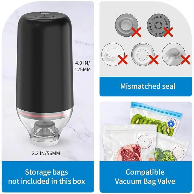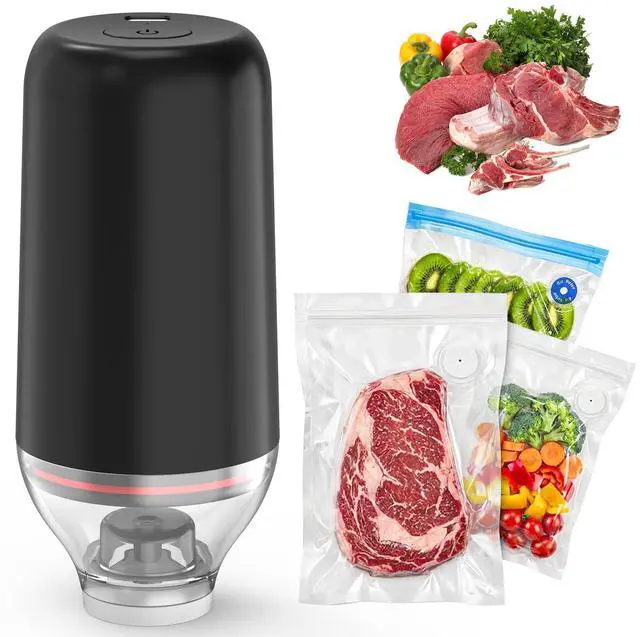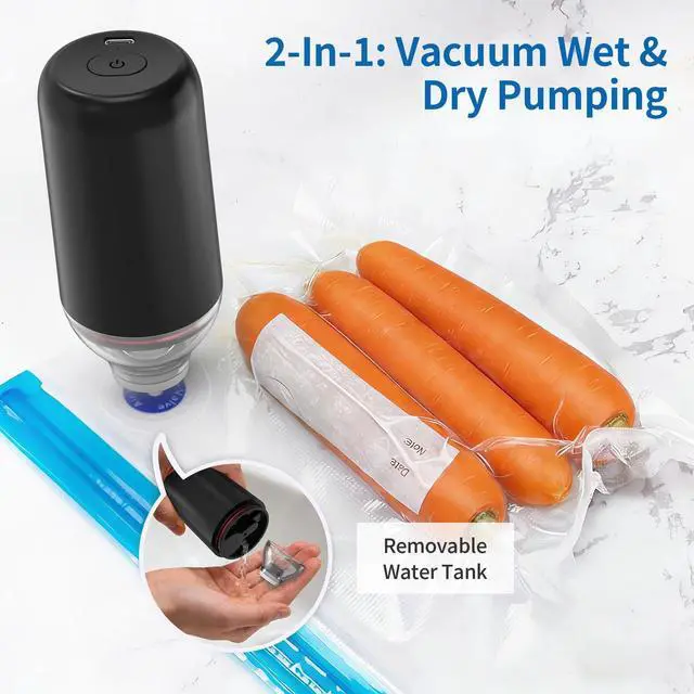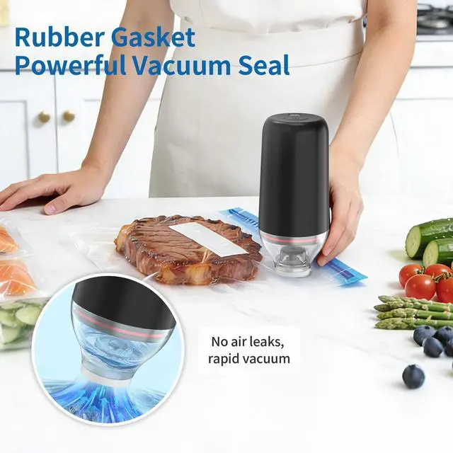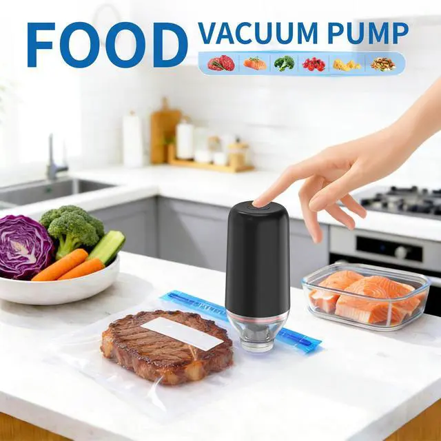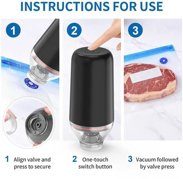 ONE-TOUCH EASY OPERATIONDesigned for ultimate convenience, simply align the pump with the bag's air valve and press the power button to start. The sous vide vacuum pump lightweight (only 0.37lb) and ergonomically shaped, making it easy for seniors or children to operate. The perfect kitchen gadget for meal prep and sous vide enthusiasts.