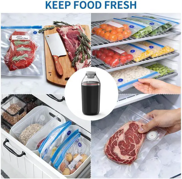 POWERFUL & RAPID SUCTIONEquipped with a high-performance motor, our handheld sealer delivers professional-grade suction to remove air in seconds (approx. 8s). By creating a tight vacuum seal, it extends food freshness up to 5x longer, preventing freezer burn and locking in original nutrients and flavors.