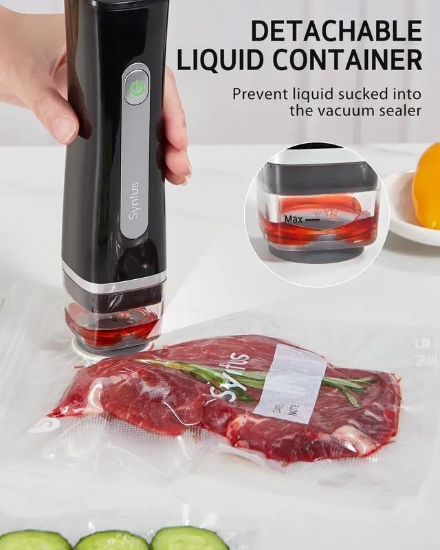 Spill-proof & Liquid-lock Tank: The vacuum sealer machine is specially designed with a visual liquid-lock tank, which can efficiently prevent liquids from entering the device or spilling onto the surface, making it ideal for sealing marinated meats, soups, juicy fruits, or leftovers. The water tank is detachable, you can easily release it to wash and reinstall.