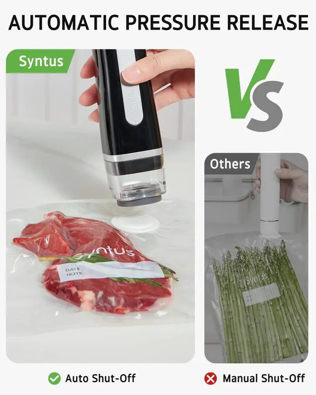 Compact yet Powerful Food Sealer: This space-saving vacuum sealer for food is lightweight, portable, and cordless, allowing you to stash it in a drawer or keep it neatly on your countertop. Small but powerful, it provides strong 60kPa suction to seal bags in seconds. It's also rechargeable and charging is effortless via the included USB-C cable, ensuring the device is always ready for daily use.