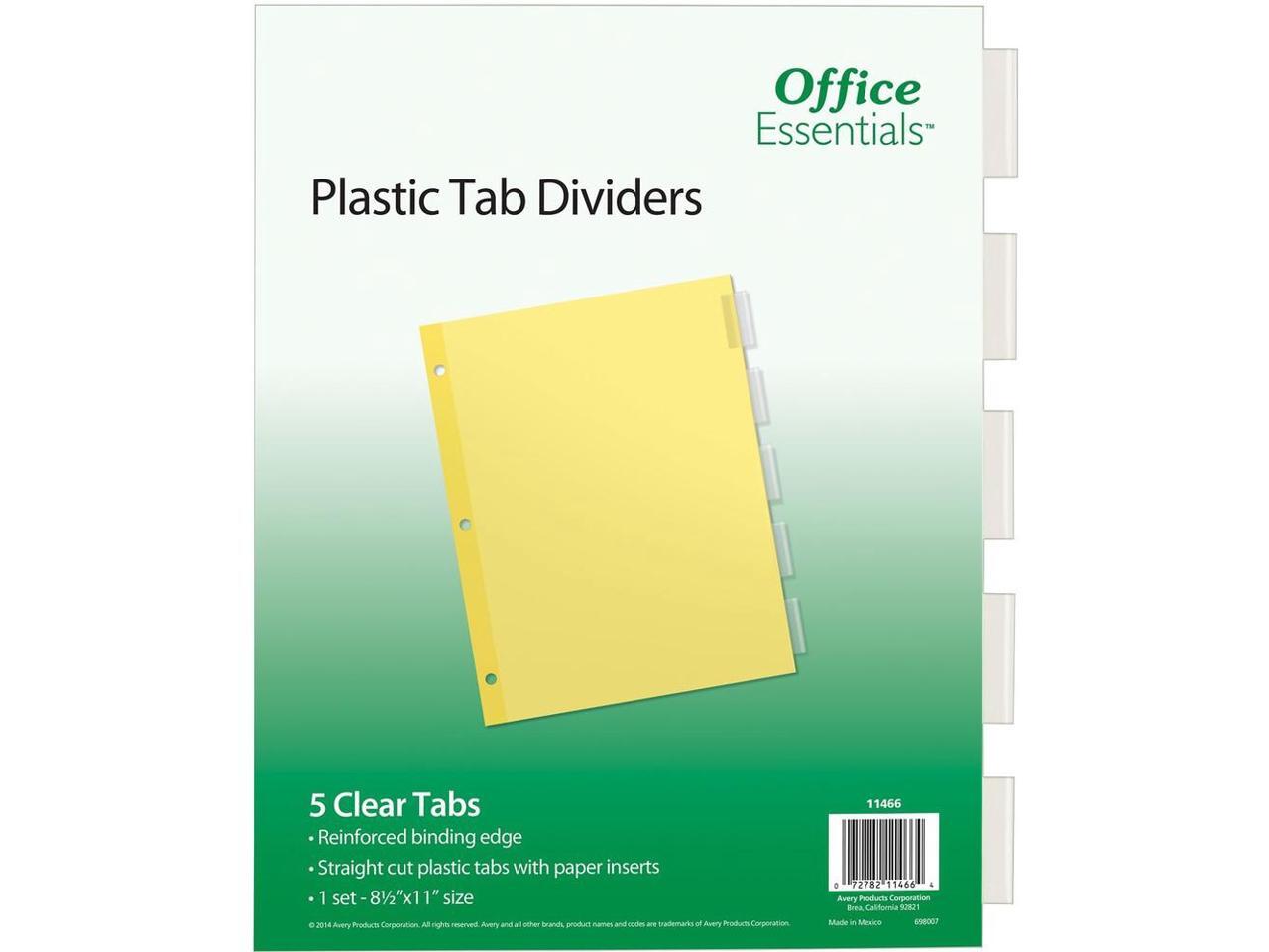 Office Essentials Plastic Insertable Dividers 5-Tab Letter 11466