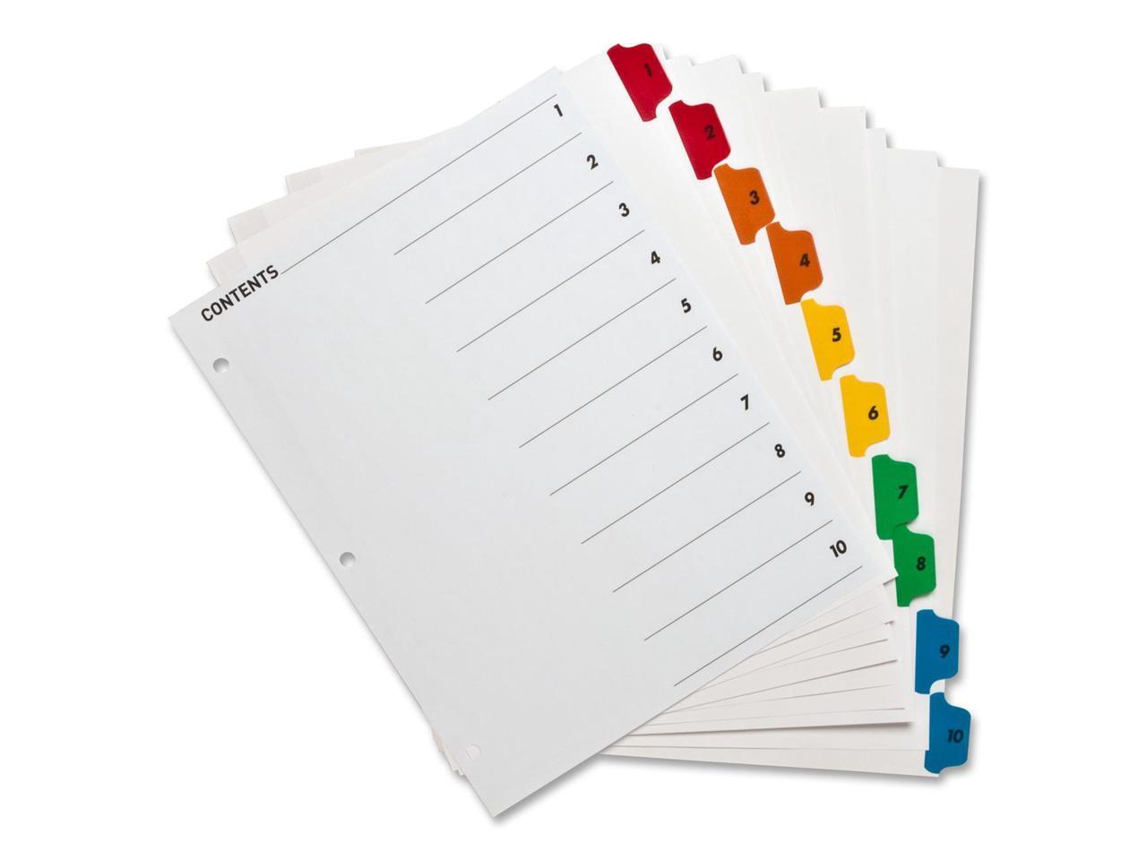 Index Dividers W/Table Of Contents, 1-10, 10 Tabs/ST, Multi