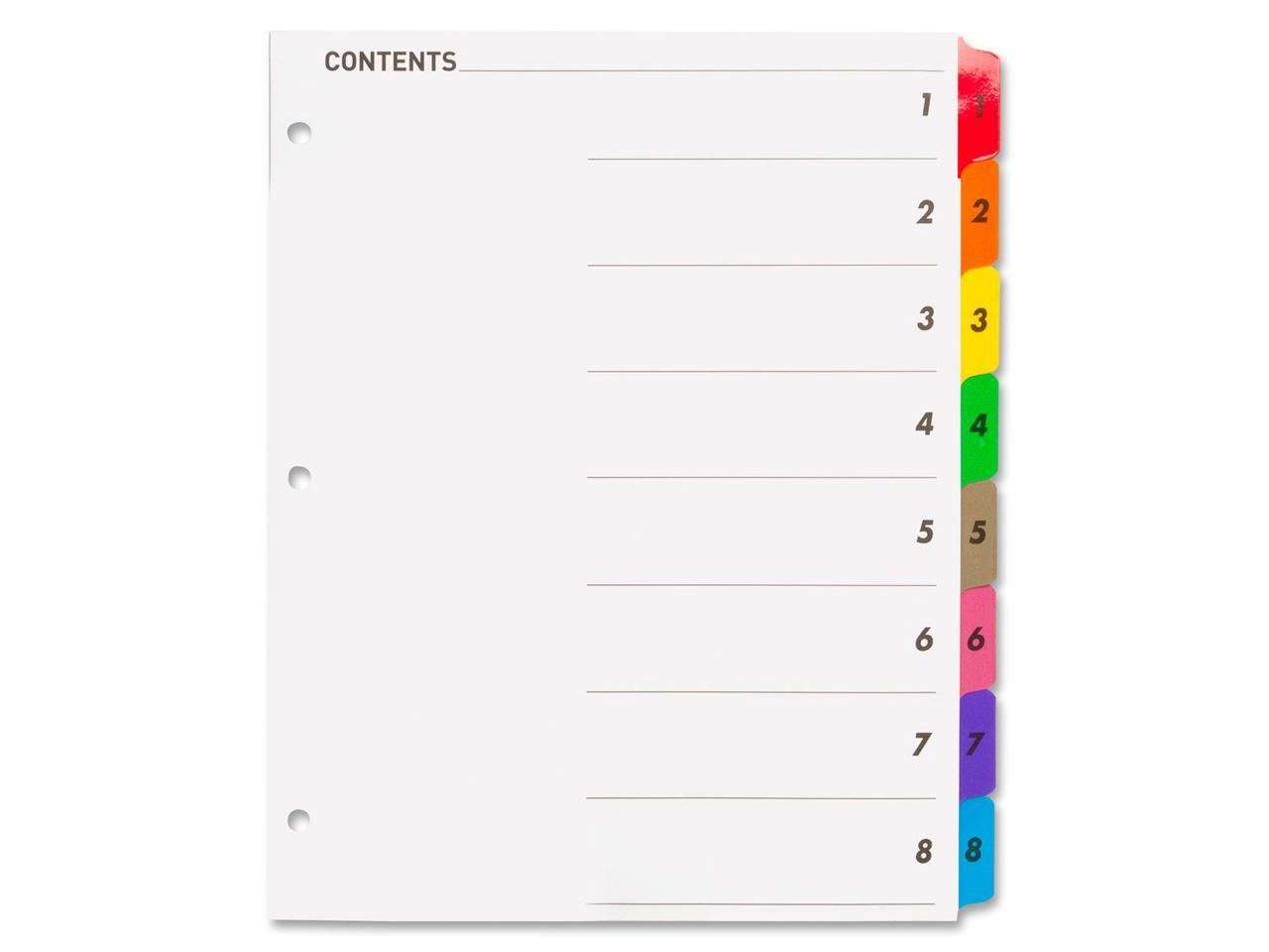 Index Dividers W/Table Of Contents, 1-8, 8 Tabs/ST Multi