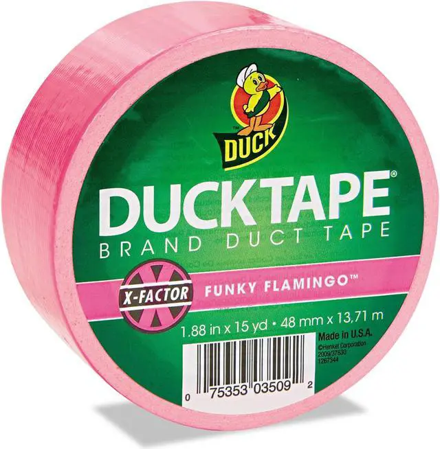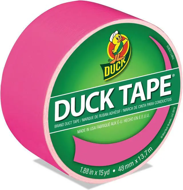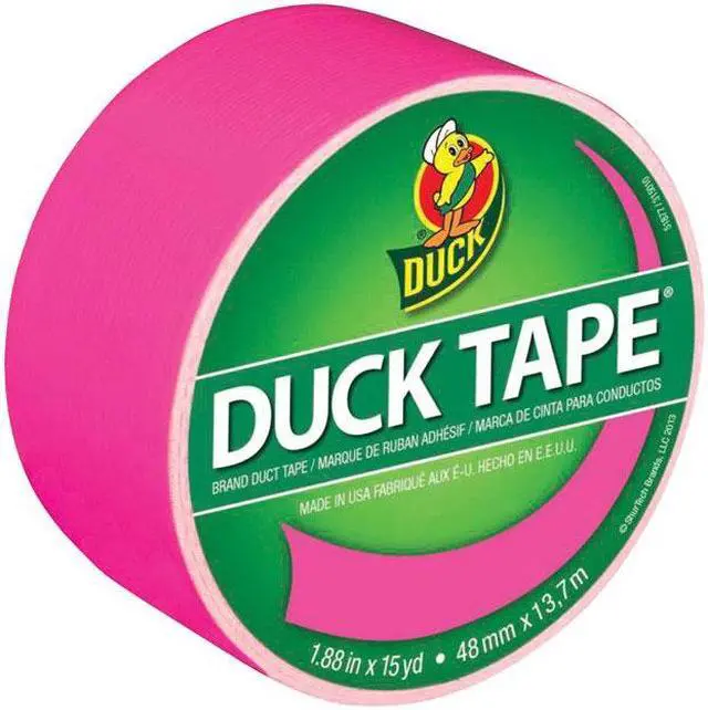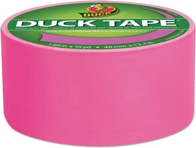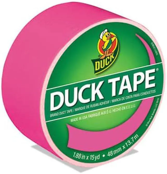 Duck Tape 1.88" x 15 yds Brand duct tape in neon pink color can be easily tear by hand without curling and conforms to rough surfaces. Tape is ideal for decorate, craft, coordinating repairs and color-coding materials.