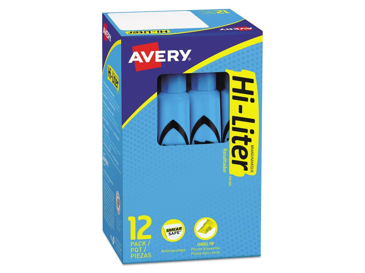 Avery 07746 Desk Style Highlighter, Chisel Tip, Light Blue Ink, 1 Dozen