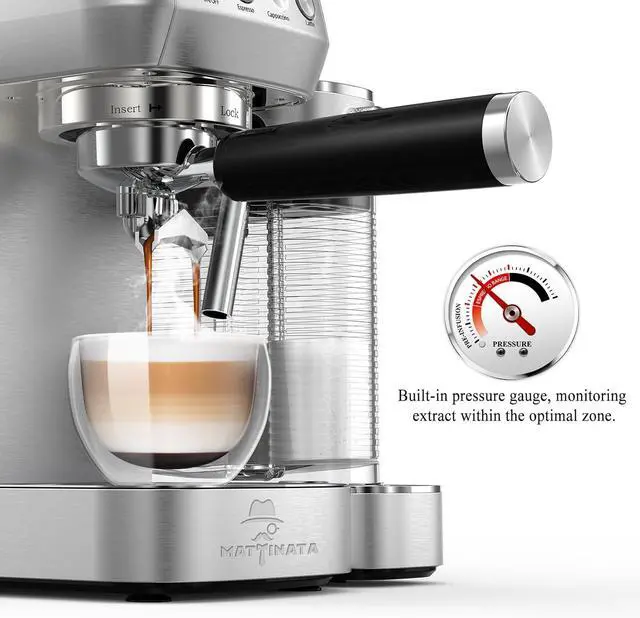 Automatic Frother System: The MAttinata cappuccino machine with one-touch operation allows you to adjust the espresso to make barista-quality lattes and cappuccinos. It is able to effortlessly froth and dispense milk foam. An ideal option for your home, busy office space and kitchen coffee bar with its stainless steel design