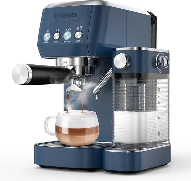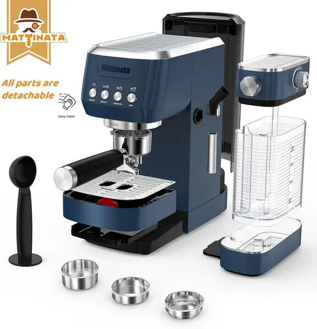 Cappuccino Machine 20 Bar, Professional Espresso Machines for Home and Office with Automatic Milk Frothering System, Barista Compact Latte Maker for Coffee Lovers, Stainless Steel-Black Blue