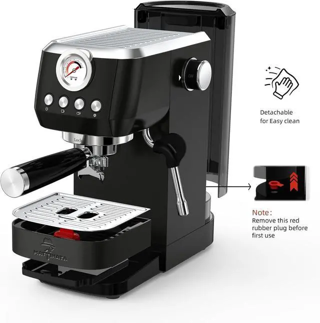Safe Operation Mechanism: This latte maker has built-in overpressure protection and prevents overheating. Detachable drip tray with red full indicator. Manually cooling design for heightened safety. 15 minutes automatic shut-off function makes it possible for you to relish your coffee when on the go without any concerns