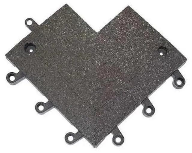 Ramp Inside Corner, Anti-Slip Backing Yes, Anti-Slip Surface Yes, Antifatigue Material No, DOC FF1-70 Rating Yes, NFSI High Traction Certified Yes, Recycled Content 80 Percent, NSF/ANSI 52 No, Antimicrobial No, Autoclavable No, Backing Characteristics Gritted Surface with Ridges, Surface Texture Grit, USDA Certified No, X-Ray Detectable No, Washdown Safe No, Color Black, Connection Style Peg and Hole, Edge Gender Female, Edge Style Beveled, Length 9 in, Material PVC