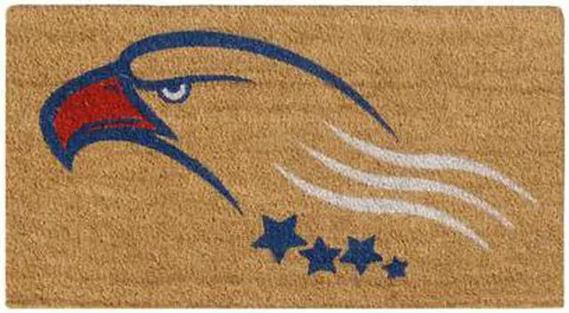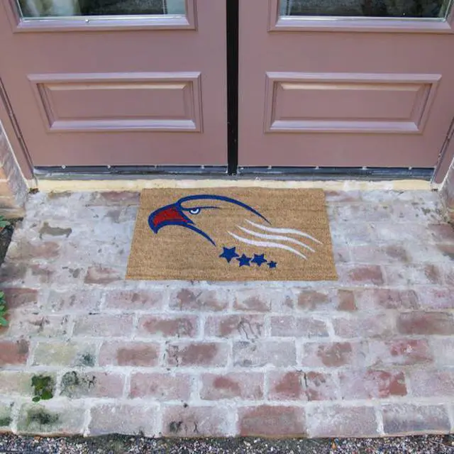 Preventing dirt and refuse from entering into your clean interior areas should be the number one priority of any set of American flag doormat. The tough, weather resistant coir material is prized in these outdoor dirt stopper doormats because they allow the mats to effectively clean out even the hardest to reach areas of your footwear. With his benefit in mind, coir is a natural choice for all types of dirt trapper doormat. The aforementioned hardy nature of coir allows it to excel in all types of environments, inside and out. In addition, these 18 x 30 coir doormats fit neatly into virtually any area and are easy to clean by simply sweeping or shaking the mats outdoors. In sum, patriotic Bald Eagle coir doormats are an aesthetic choice suitable for any home or office.
